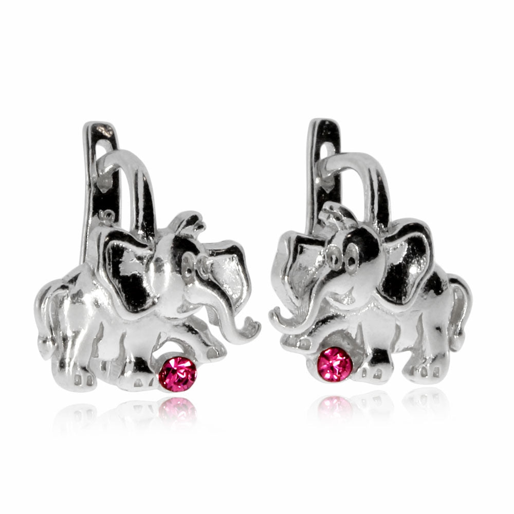 Dětské stříbrné náušnice - Slon s růžovým kamínkem