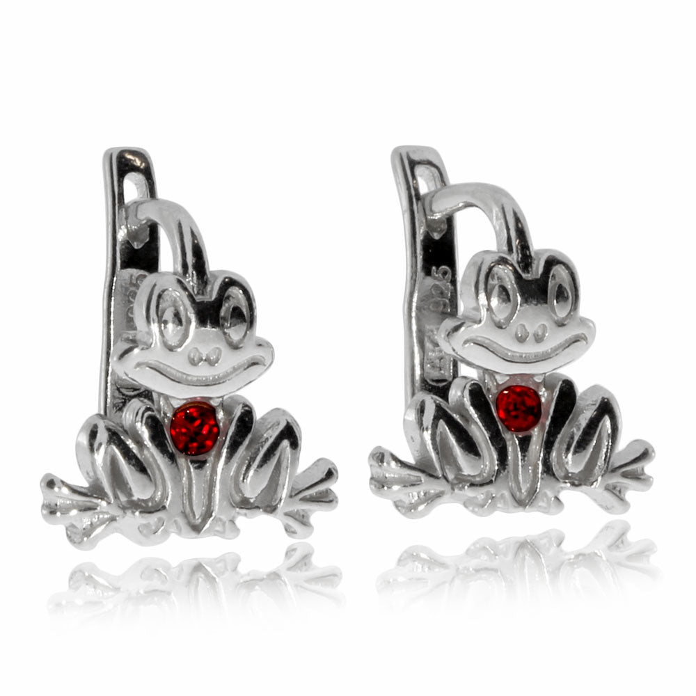 Dětské stříbrné náušnice - Žabky s červeným kamínkem