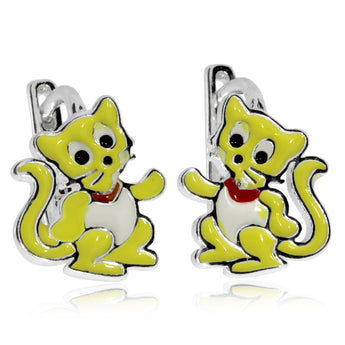 Dětské náušničky ze stříbra ve tvaru malých kočiček jsou pěkně vybarvené světlými barvami v nichž září červená mašlička. Náušnice pro malé parádnice mají pevné patentní zavírání.