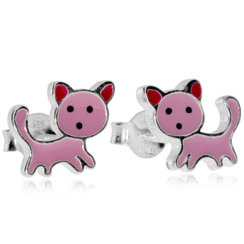 Dětské stříbrné náušnice - Růžová udivená kočka