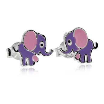 Dětské stříbrné náušnice - Fialoví sloníci s růžovýma ušima