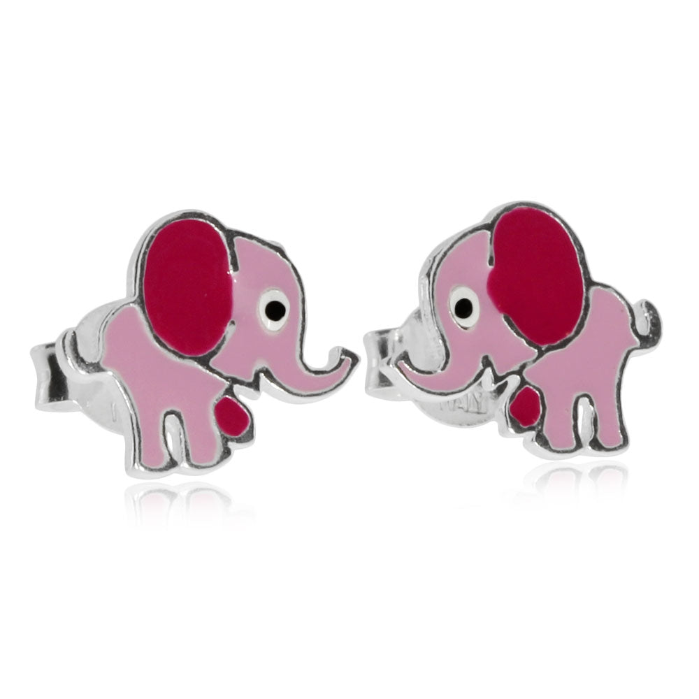 Dětské stříbrné náušnice - Sloníci s růžovýma ušima