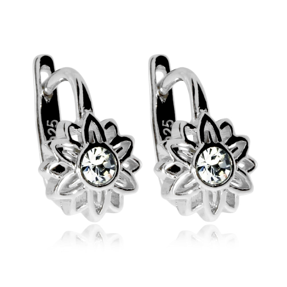Dětské stříbrné náušnice - Kytičky s čirým kamínkem