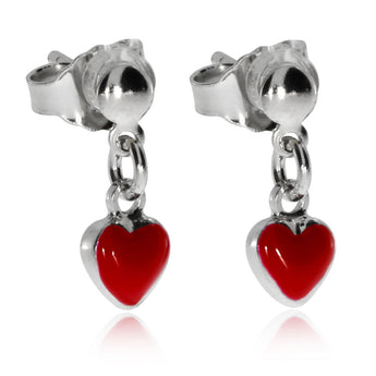 Stříbrné dětské náušnice srdíčka v červené barvě