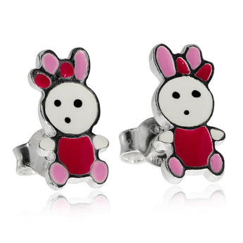 Stříbrné dětské náušnice zajíčkové v růžové barvě