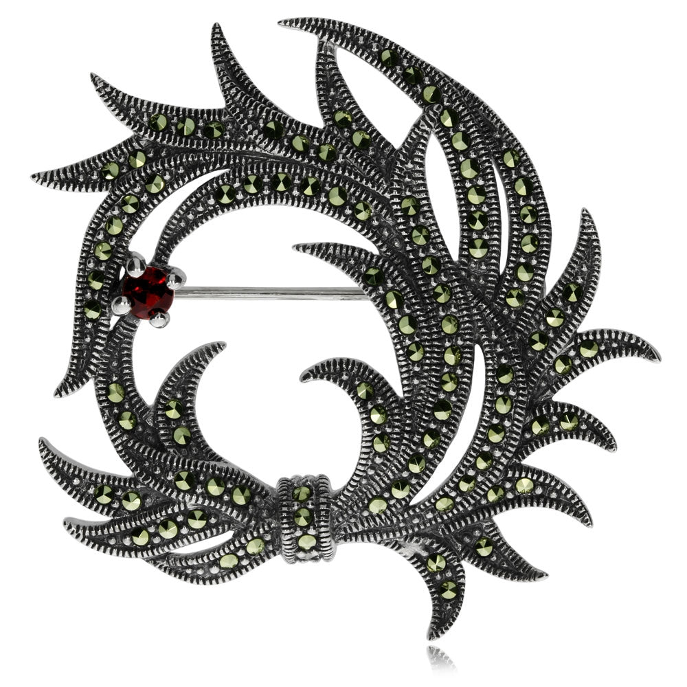 Stříbrná brož s markazity a granátem (almandin), plamenný kruh