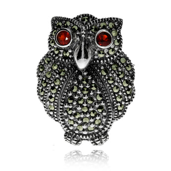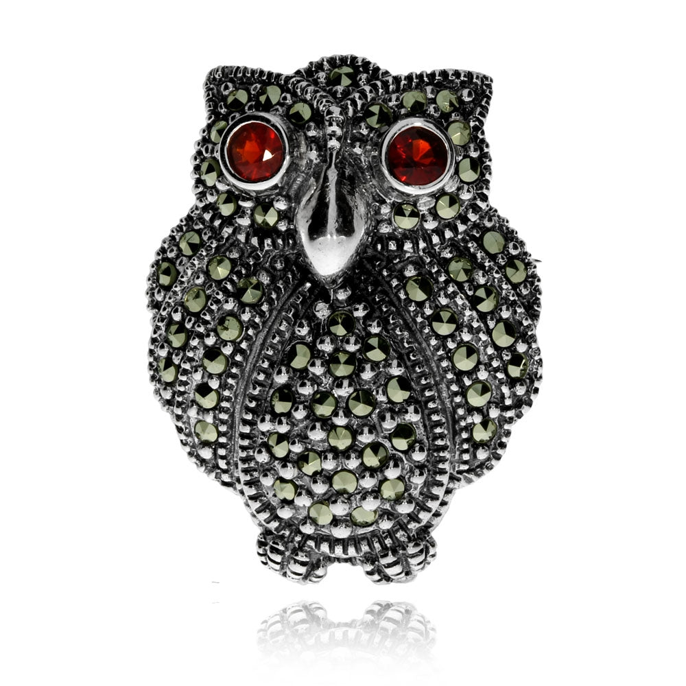 Drobná brož ve tvaru sovičky může ozdobit malou klopu a udělat velkou radost. Upřimný výraz jejích očí z granátu dojme každého, kdo na ni pohlédne.