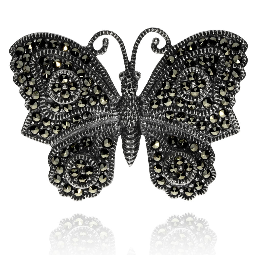 Stříbrná brož posázená markazity s motivem motýla
