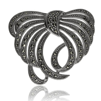 Stříbrná brož zdobená markazity ve tvaru mašle