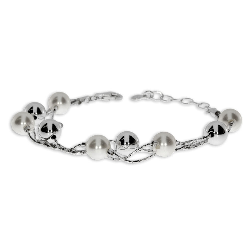Střbrný rhodiovaný náramek - Kuličky na řetízku