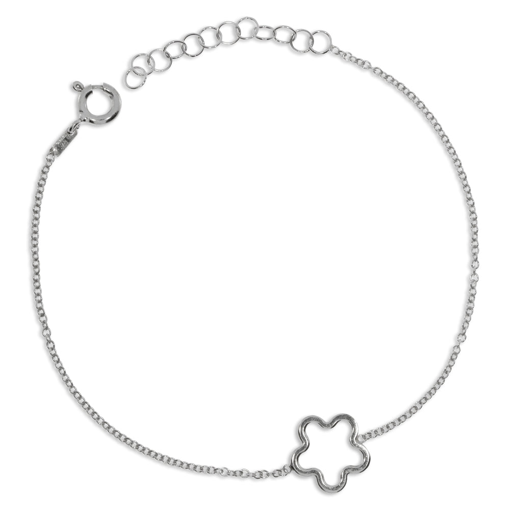 Jemný dívčí náramek z rhodiovaného stříbra má prodlužovací řetízek. Základní délka náramku bez prodlužovacío řetízku je 16 cm. Drobná ozdoba uprostřed řezítku něžně symbolizuje květ. Tento stříbrný šperk je vhodným dárkem pro mladé dívky.