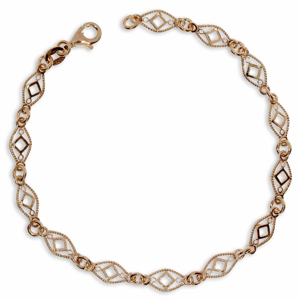 Stříbrný náramek růžové barvy složený zdobnými markýzami
