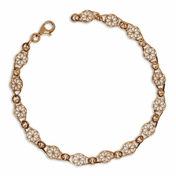 Stříbrný náramek růžové barvy složený z jemných květinek