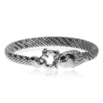 Stříbrný náramek je vytvořen z pleteniny stříbrných nití a jeho dominantní ozdobou je zapínání ve tvaru lví hlavy zakousnuté do kroužku karabiny. Náramek je potom nošen tak, aby ozdobné zapínání bylo na hřbetu ruky. Náramek se lví hlavou je okouzlující, není však určen pro každodenní nošení a rozhodně musí být snímán na noc. Pletenina tvoří dutý tunýlek a je třeba s ním zacházet jako se šperkem pro slavností příležitost.