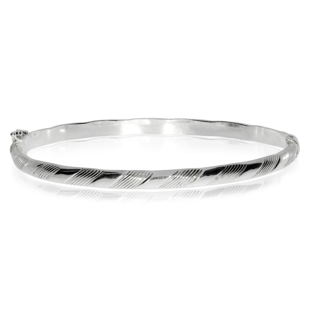 Stříbrný náramek - Otvírací obruč se střídaným rýhováním