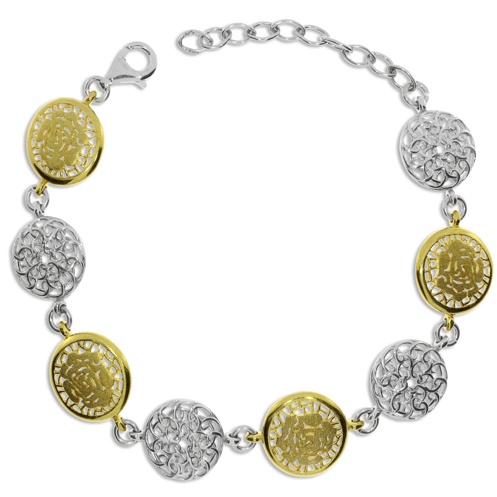 Stříbrný náramek částečně pozlacený s motivem růže