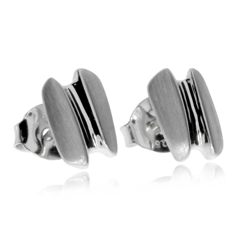 Velice nápaditě zpracované dámské náušnice, které působí elegantně a skvěle doplní pracovní kostýmek i volnočasové oblečení. Náušnice jsou vyrobené z dobře odolného a zářivého rhodiovaného stříbra a působivě kombinují lesklou a matnou povrchovou úpravu. Vzniká tak zajímavý ozdobný efekt.