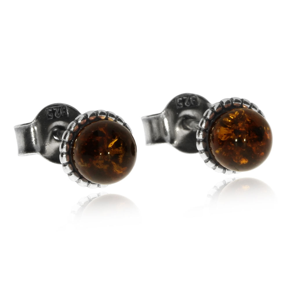 Stříbrné náušnice s jantarem - malé půlkuličky