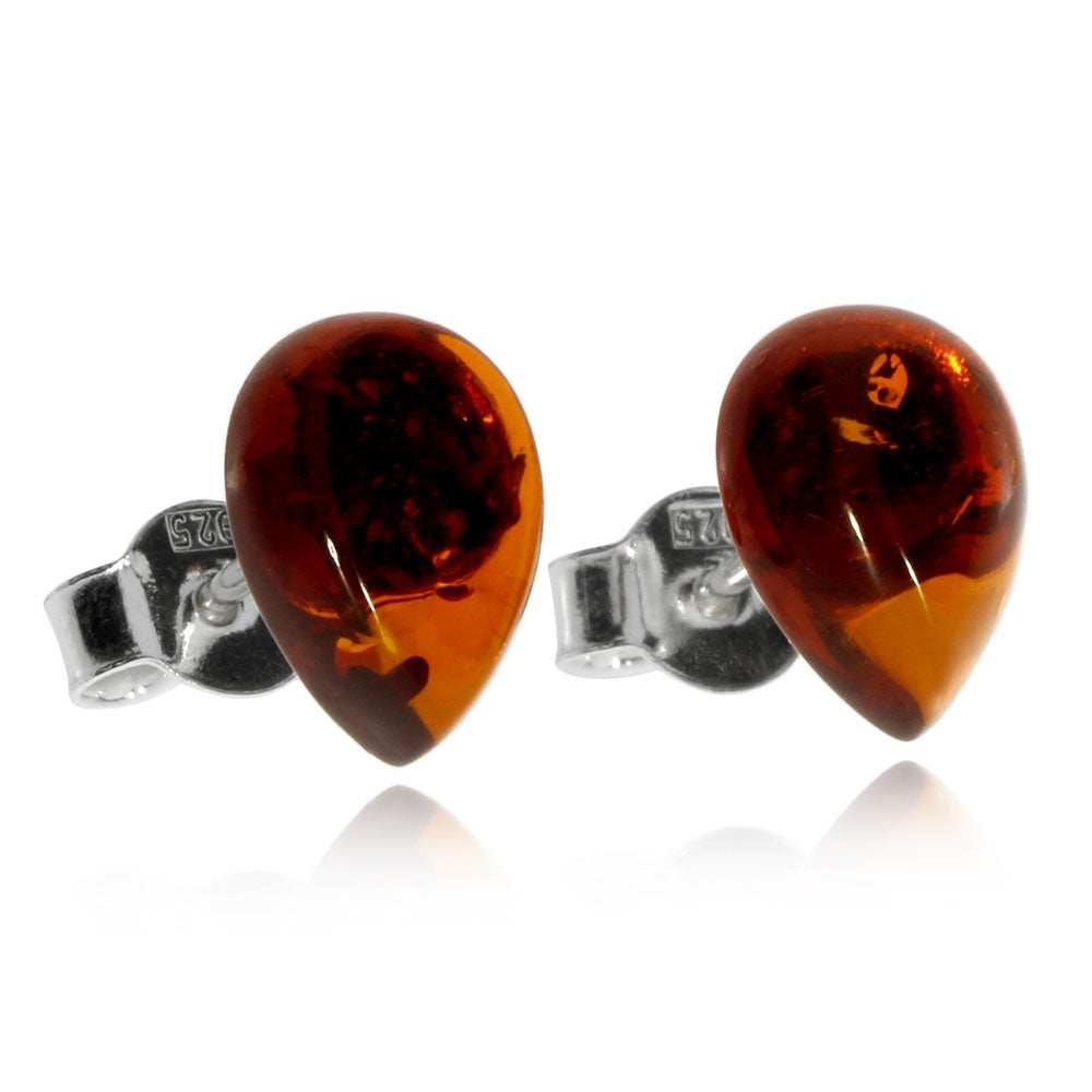 Stříbrné náušnice se hnědým jantarem ve tvaru kapky
