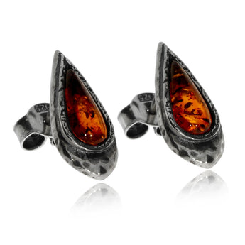 Netradiční a velice zajímavé dámské náušnice bodového typu jsou vyrobené ze stříbra se starostříbrnou povrchovou úpravou. Ta působí, jako by náušnice pocházely z dávných magických dob. Každá náušnice nese kousek zlatavého jantaru ve tvaru protáhlé kapky.