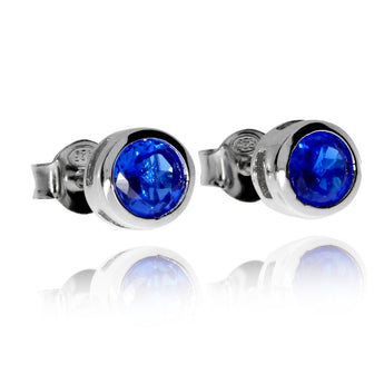 Stříbrné náušnice pecky s modrým syntetickým kamenem, kulaté