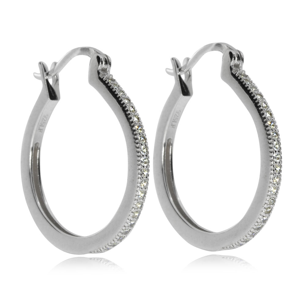 Stříbrné náušnice - Kruhy zdobené kamínky