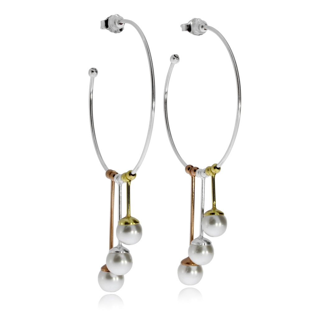 Stříbrné náušnice částečně zlacené se zavěšenými syntetickými perlami