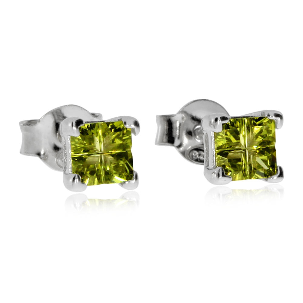 Stříbrné náušnice čtvercové se zirkony světle zelené barvy (cubic zirconia