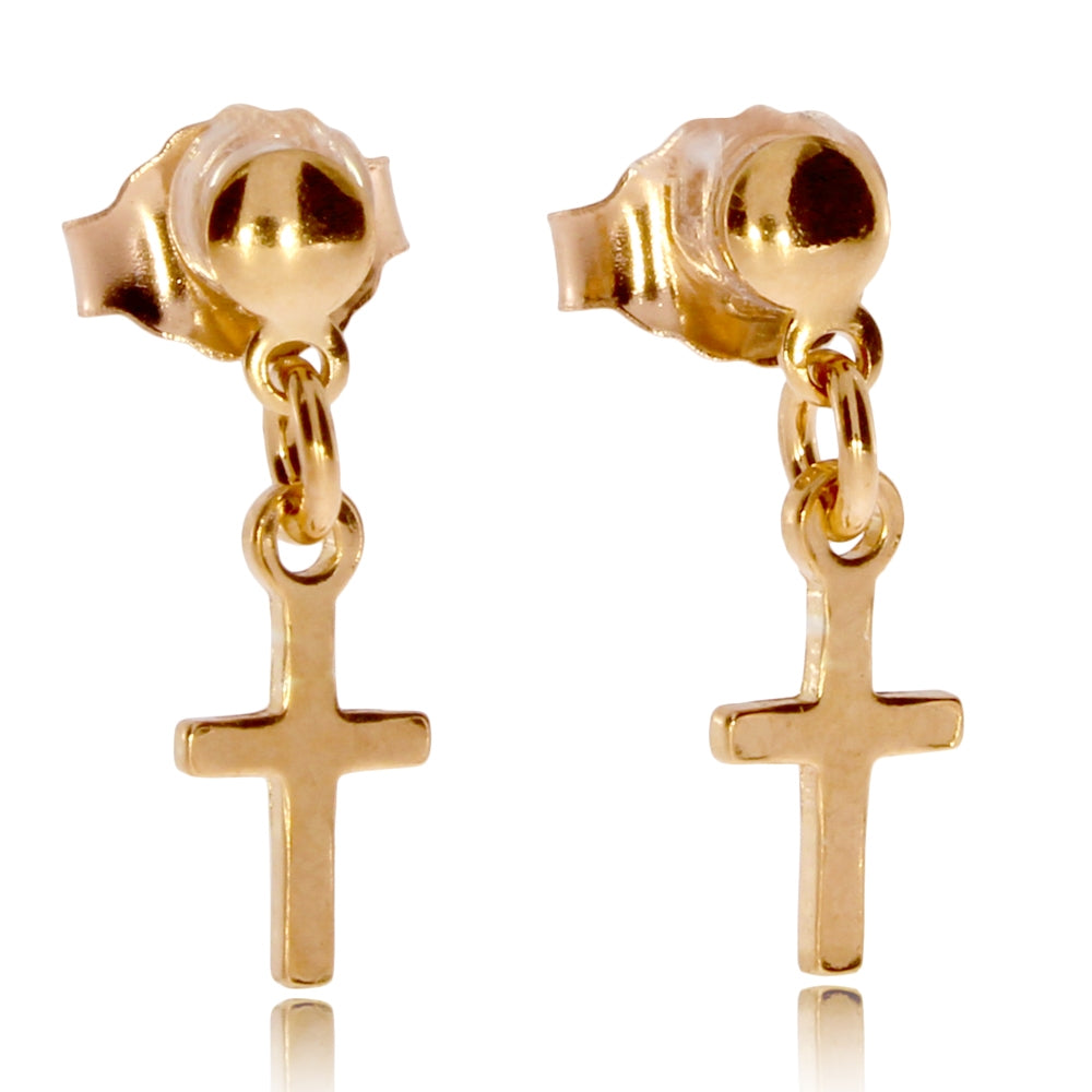 Stříbrné pozlacené náušnice - Zavěšené křížky