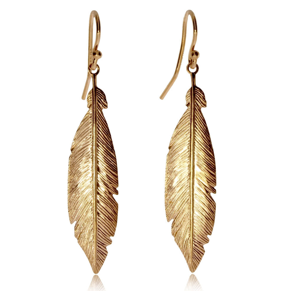 Stříbrné pozlacené náušnice - Pírka na háčku