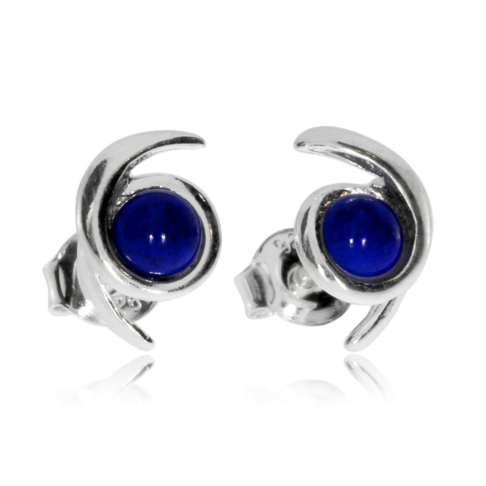 Stříbrné náušnice - Kulatá esíčka s lapisem lazuli