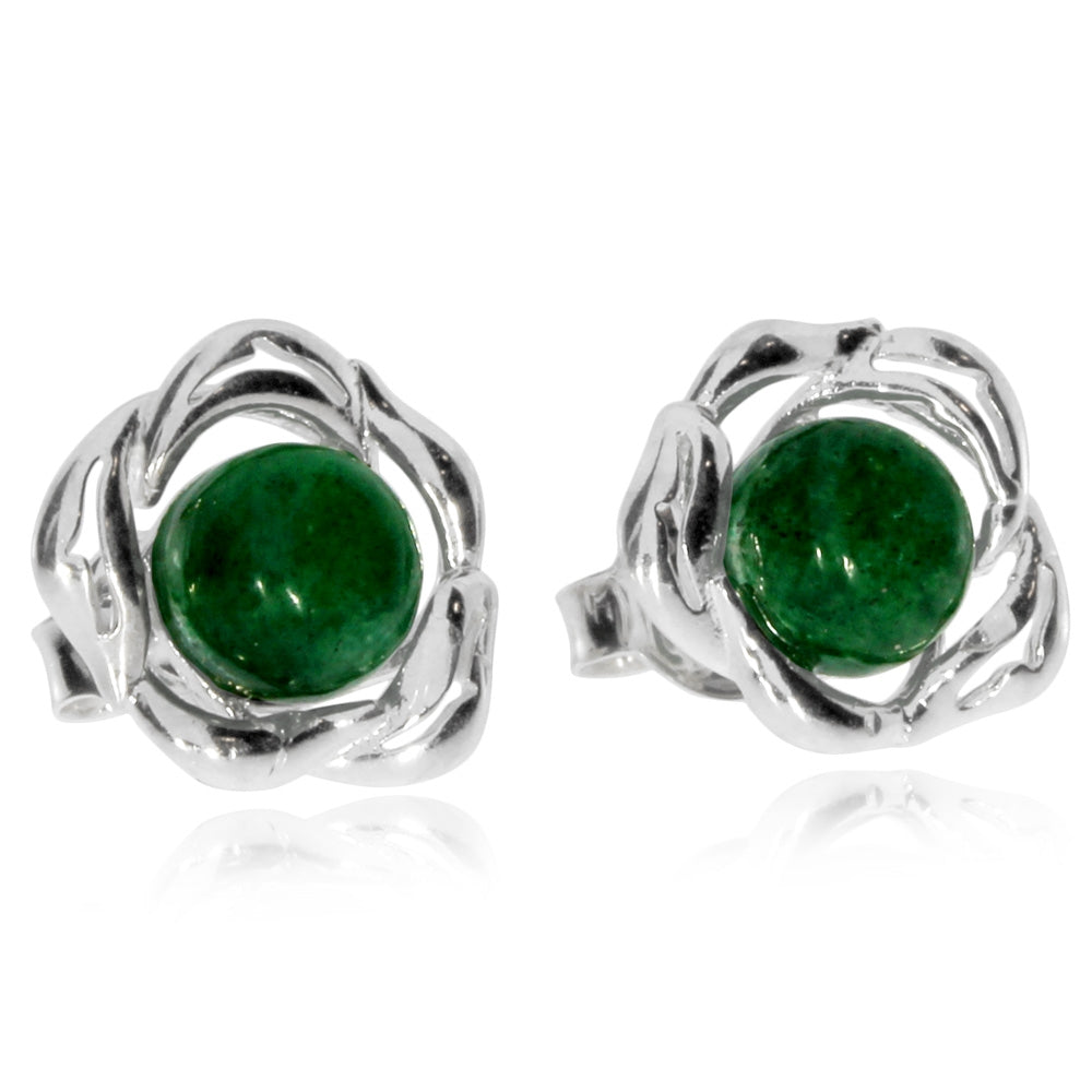 Stříbrné náušnice - Kulatý aventurín uprostře kytičky