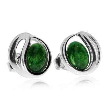 Dámské stříbrné náušnice pecičky oválného tvaru s volně zasazeným přírodním kamenem aveturinem zaujmou barvou kamene i způsobem jeho usazení v kovovém lůžku. Tyto drobné náušnice jsou skvělým doplňkem k barevnému doladění oblečení.