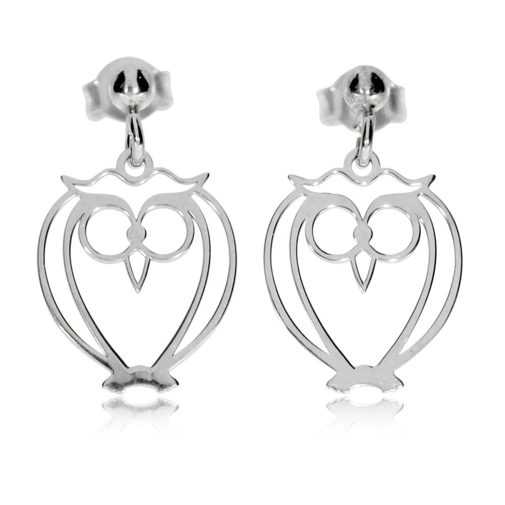 Dámské stříbrné náušnice pro ženy se smyslem pro humor potěší zejména ve volném času. Obrysy pěkných zakulacených soviček zavěšených na lesklé kuličce jistě zaujmou přátele jejich majitelky. Náušnice jsou vyrobené ze stříbra o ryzosti 925/1000, které je napovrchu pokryté lesklým rhodiem. Jsou velmi lehké a mají jednoduché zapínání na puzetu.