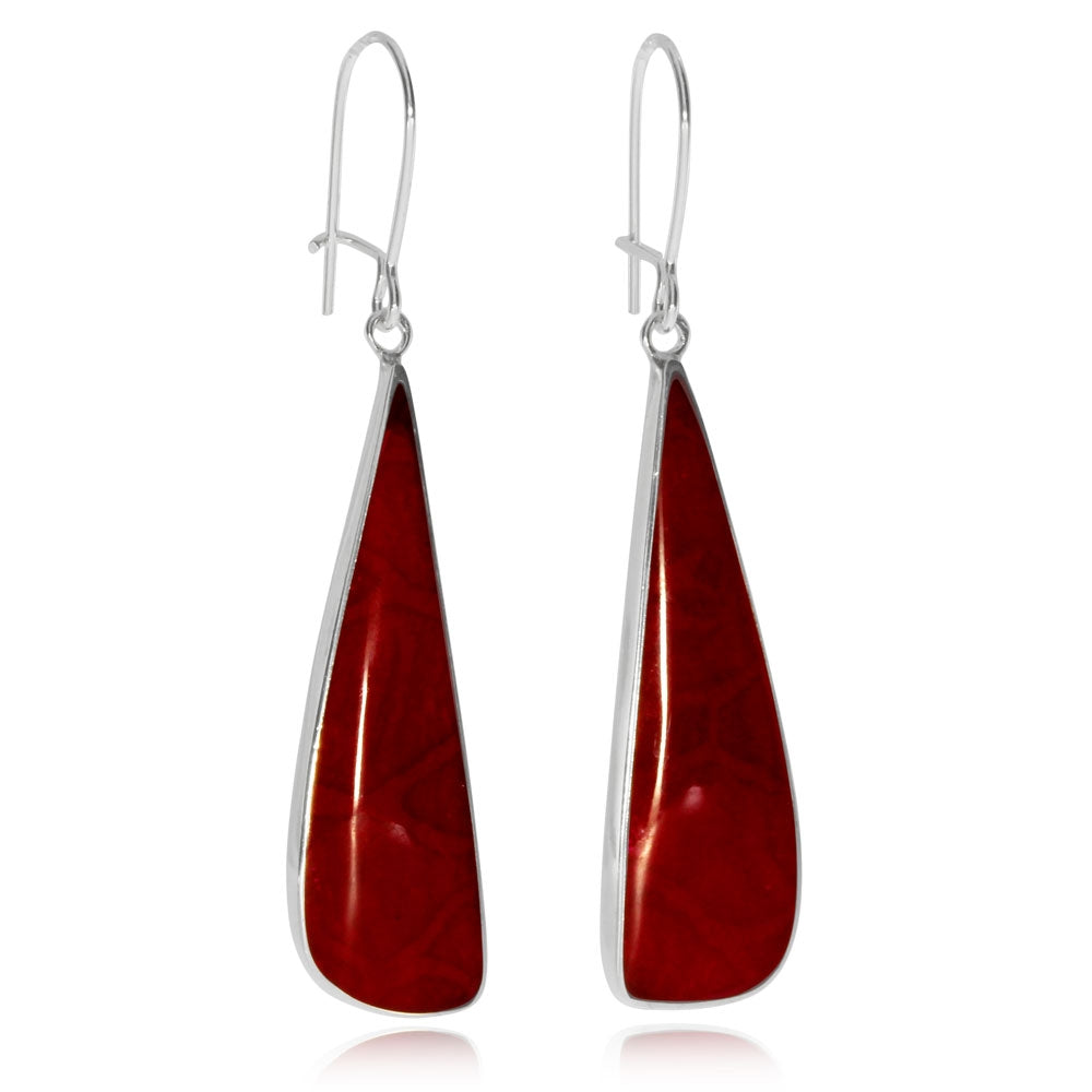Stříbrné náušnice s korálem - Dlouhé nepravidelné kapky