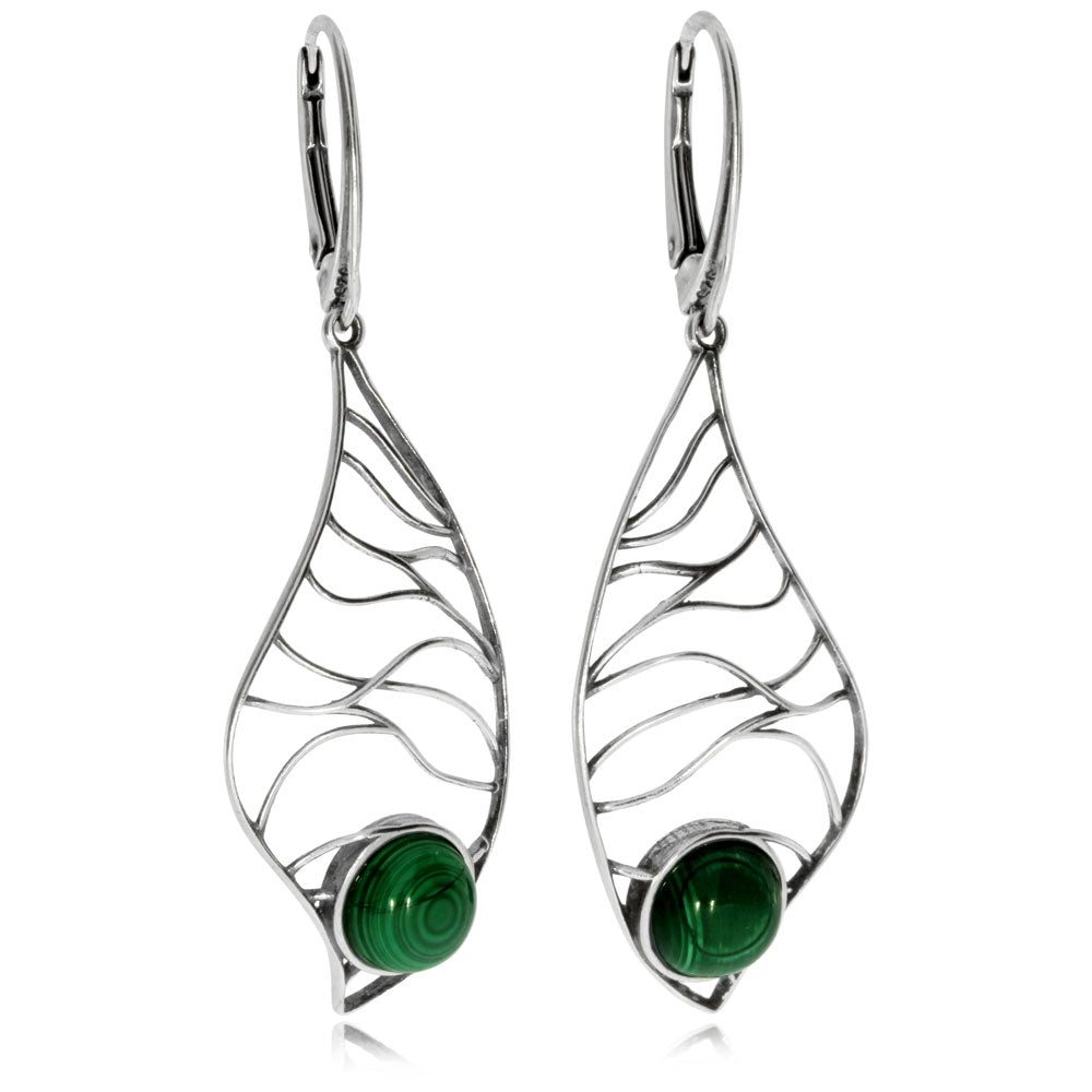 Stříbrné náušnice s malachitem v jemném přívěsku