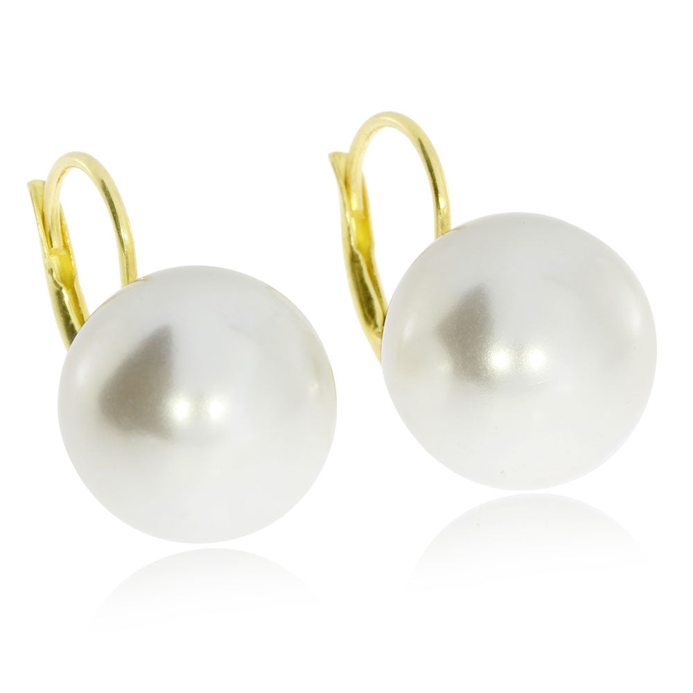 Nápadné perlové náušnice jsou vyrobené ze stříbra o ryzosti 925/1000, které je na povrchu zlacené žlutým zlatem a osazené bílou umělou perlou. Perla je poměrně dost velká, její průměr dosahuje 1,3 cm. Elegantní šperk bude svoji majitelku zdobit ve dny všední i sváteční - to je právě na perlách skvělé, že mají velmi všestranné využití.
