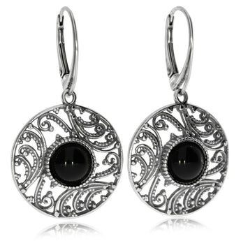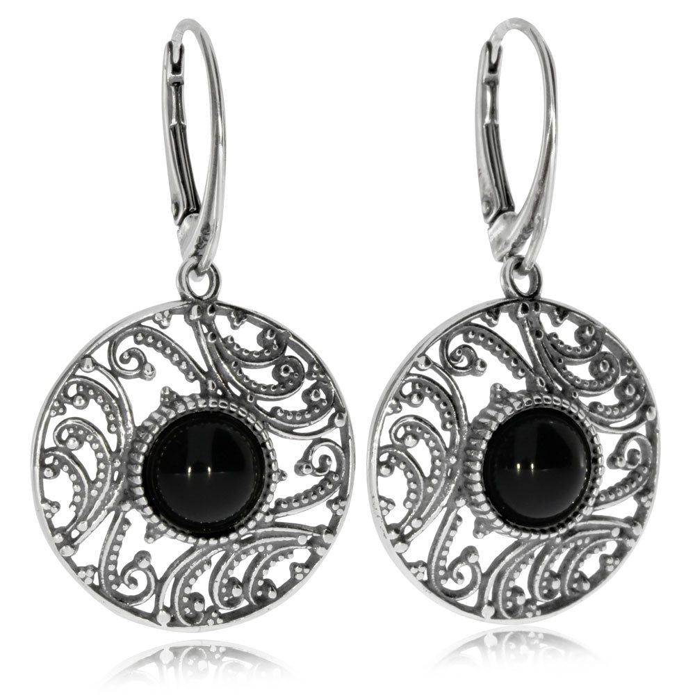Stříbrné visací náušnice - Kulaté přívěsky s onyxem