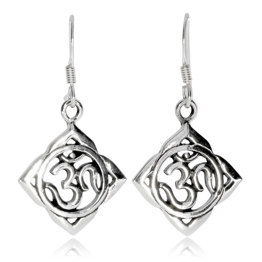 Stříbrné náušnice - Symbol mantry Óm v kosočtverci