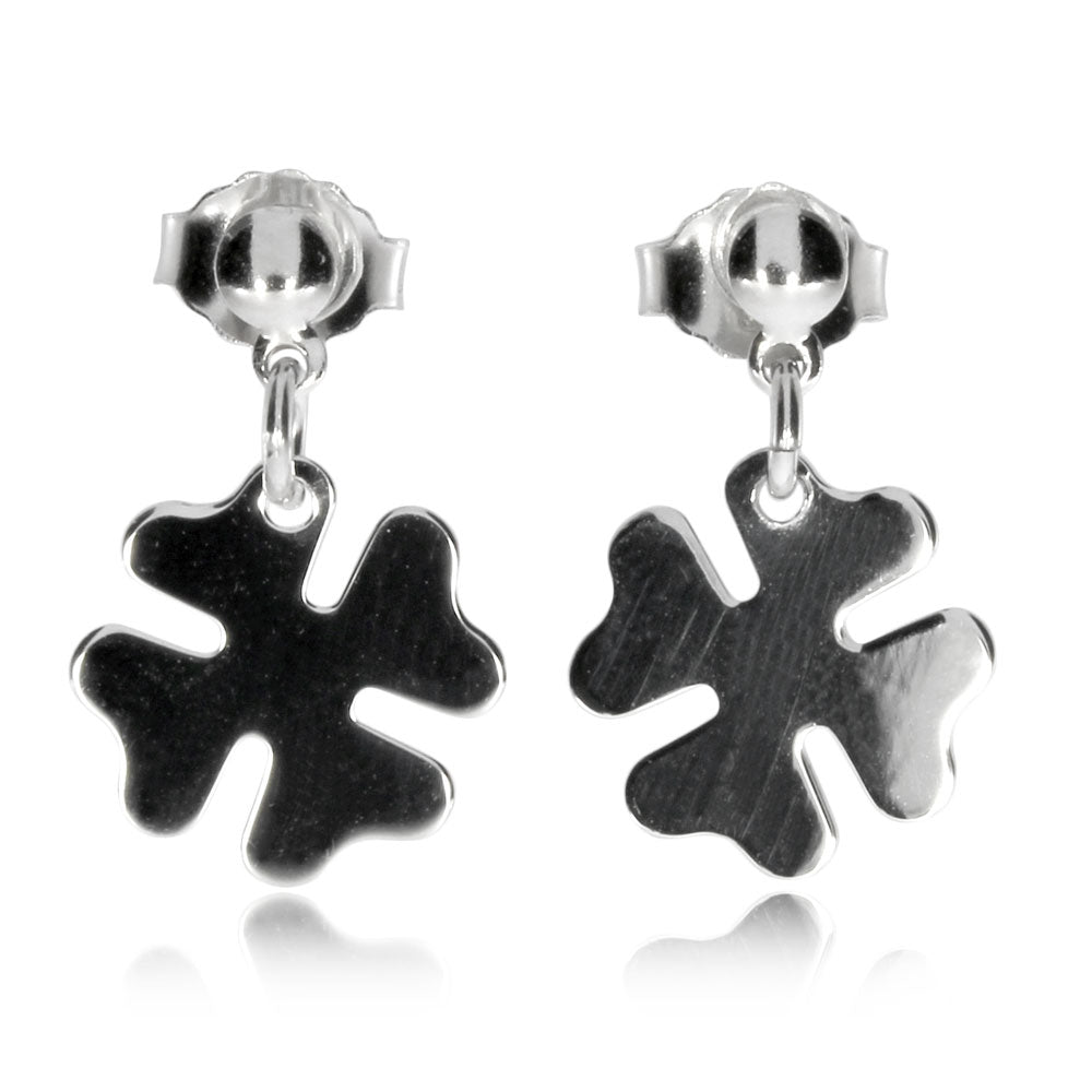 Drobné náušnice se zapínáním na puzetu jsou vyrobené ze stříbra o ryzosti 925/1000 a na povrchu jsou pokryté lesklým rhodiem. Malé čtyřlístky jsou pohyblivě zavěšené pod malou kuličkou. Tento drobný šperk je vhodný pro každodenní nošení.