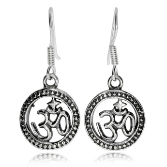 Stříbrné visací náušnice - Znak Óm v kruhu