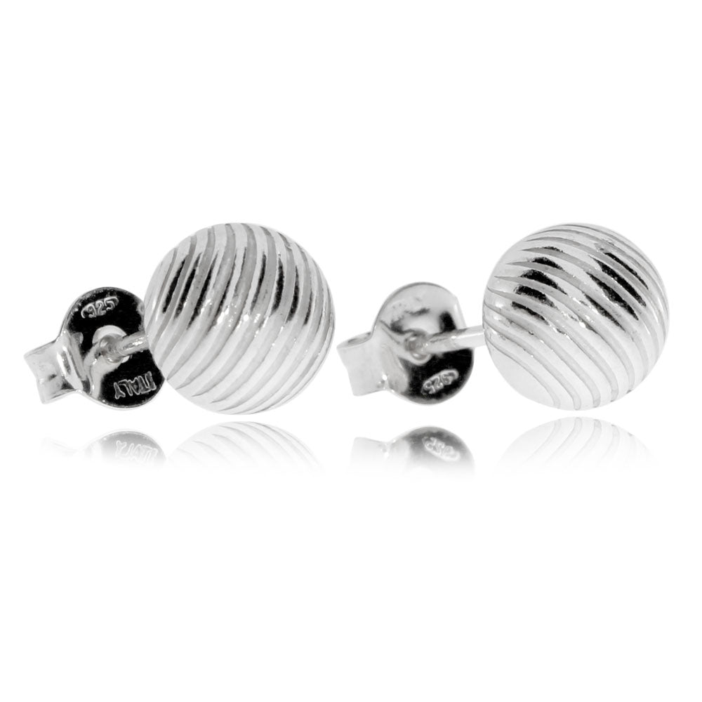 Drobné náušnice kuličky se zapínáním na puzetu jsou zdobené jemnými vroubky. Náušnice jsou vyrobené ze stříbra o ryzosti 925/1000 a jejich povrch je galvanizován rhodiem. Průměr kuliček je 0,8 cm . Náušnice se hodí jako drobný doplňkový šperk pro denní nošení.