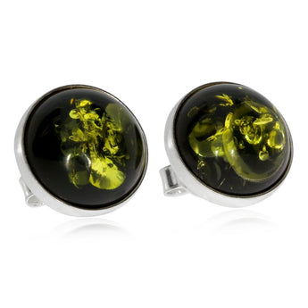 Oblíbené jantarové náušnice pro každodenní nošení mají uzávěr na puzetu. Zelený jantarový kámen je zasazen do jednoduché hladké obruby. Barva vyleštěného stříbra je v zajímavém kontrastu se zeleným jantarem a může tak tvořit skvělý doplněk k oblečení.
