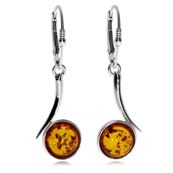 Stříbrné visací náušnice s kulatým jantarem v nezvyklém designu