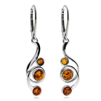 Stříbrné náušnice s drobnými jantary ve spirálkách