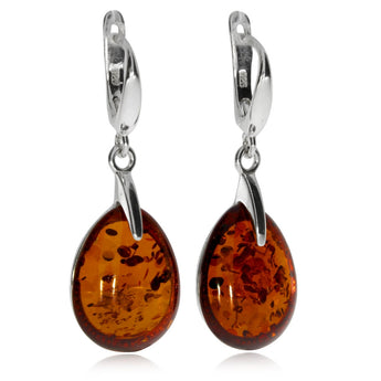 Stříbrné náušnice s hnědým jantarem bez obruby s aglickým zámkem