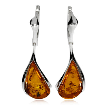 Stříbrné náušnice s hnědým jantarem - Nepravidelné kapky se širší obrubou