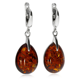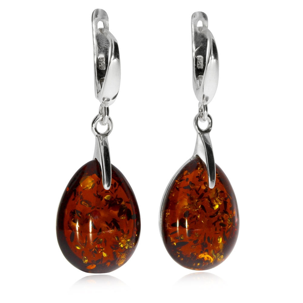 Stříbrné visací náušnice s medovým jantarem bez obruby