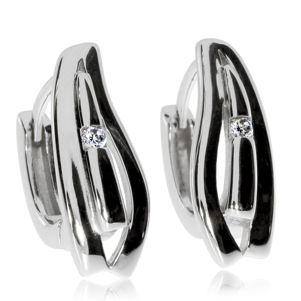 Stříbrné náušnice podélného tvaru s jedním kamínkem