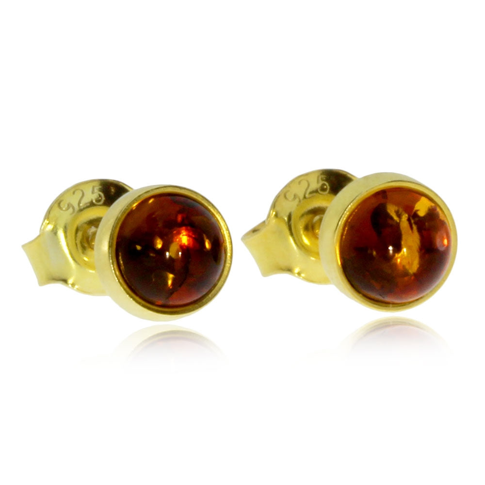 Stříbrné pozlacené náušnice s kulatým jantarem v obrubě